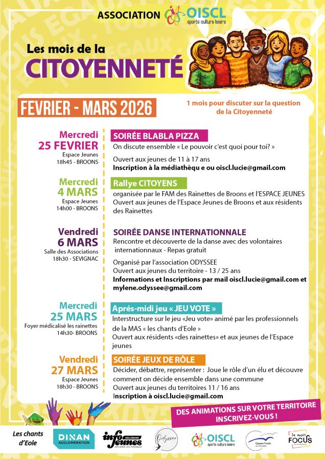 Tout au long du mois de mars, des ateliers, jeux et animations seront proposés par les structures locales pour sensibiliser et faire découvrir la citoyenneté de manière concrète et ludique.
