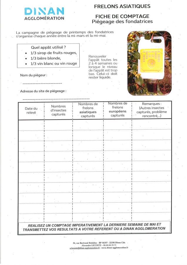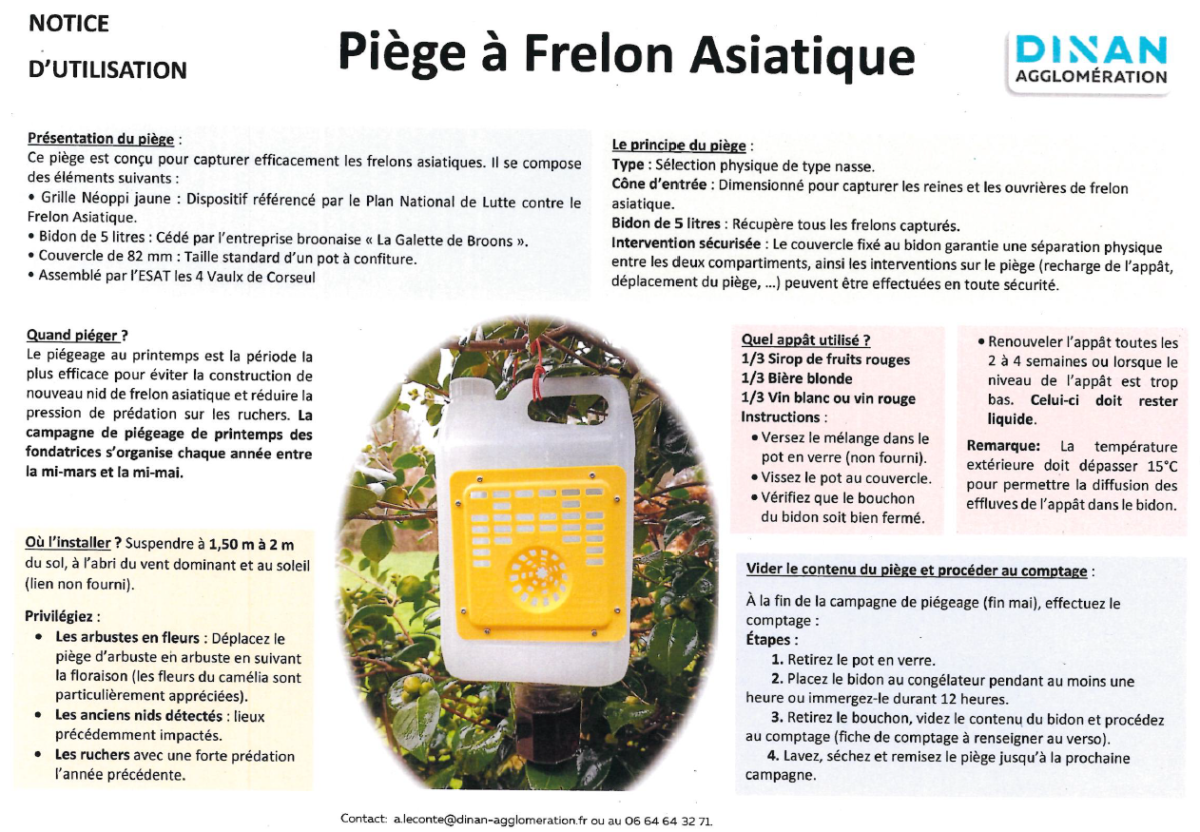 Démarrage de la campagne de piégeage des frelons asiatiques : vous pouvez dès à présent venir récupérer, à la mairie, un piège mis à disposition par Dinan Agglomération.